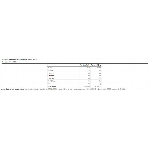 Zutaten Ice Tea PfirsichWasser, Säureregulatoren: E330/E331, L-Carnitin, Aroma, Konservierungsmittel: E202/E211, Süßstoff: E955, Farbstoff: E150d.