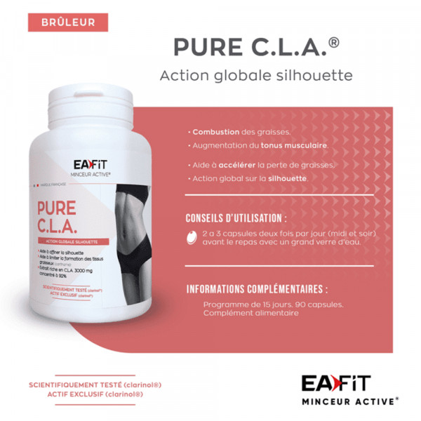 Pure CLA (90 Kapseln) ist ein Nahrungsergänzungsmittel zum Abnehmen, das von der Marke EAFIT angeboten wird.