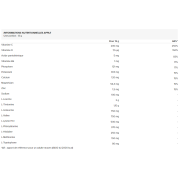 Zutaten - Geschmacksrichtung Apfel : l-Leucin, l-Threonin, l-Isoleucin, l-Valin, L-Lysinhydrochlorid, l-Phenylalanin, L-Histidinhydrochlorid, l-Methionin, l-Tryptophan, Säuerungsmittel (Zitronensäure, Apfelsäure, l(+)-Weinsäure), Kaliumsalze der Orthophosphorsäure, L-Ascorbinsäure (Vitamin C), Calciumsalze der Orthophosphorsäure, Calciumpantothenat (Vitamin B5), natriumchlorid, Natriumcitrat, Magnesiumoxid, Zinkgluconat, Pyridoxinhydrochlorid (Vitamin B6), Cholecalciferol (Vitamin D3), Aroma, Trennmittel (Siliciumdioxid), Süßungsmittel (Sucralose, Steviolglycoside), Farbstoff (Spirulina-Pulver), Apfelextrakt, Emulgator (Lecithine), Farbstoff (Curcumin).