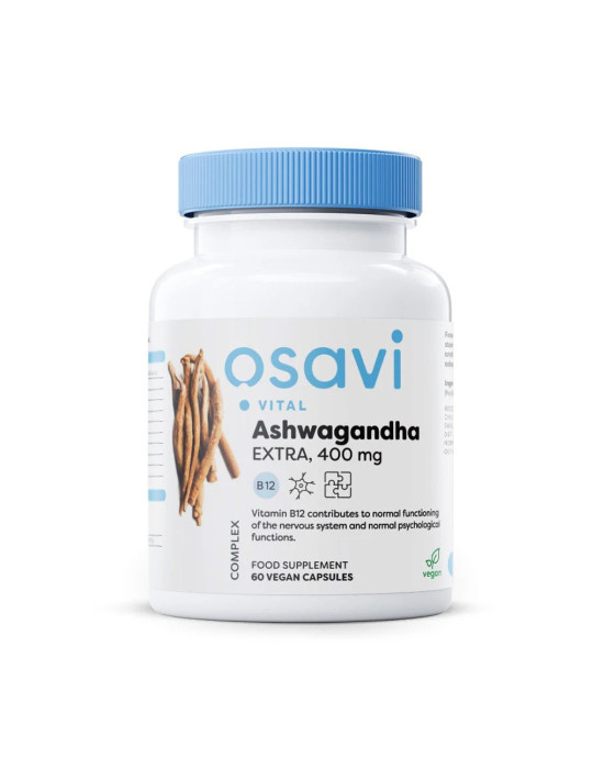 Ashwagandha Extra 400 mg (60 Kapseln) vonOsavi ist ein hochwertiges Nahrungsergänzungsmittel, das einen standardisierten Extrakt aus der Ashwagandha-Wurzel (Withania somnifera) und Vitamin B12 (Methylcobalamin) kombiniert, zwei wichtige Nährstoffe, die Ihr allgemeines Wohlbefinden unterstützen.