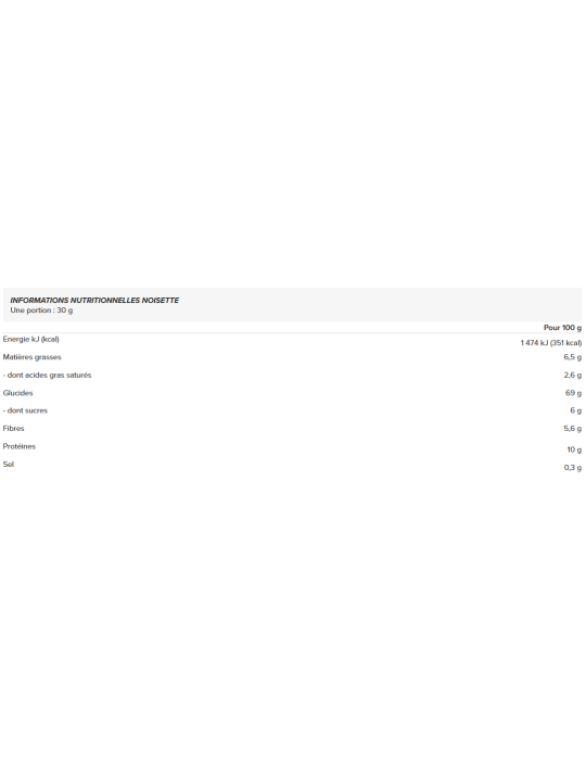 Zutaten - Haselnussgeschmack : Haferflocken (enthält Gluten) 28%, Süßungsmittel (Maltitole), extrudiertes Getreide 15% (Mehlmischung(Weizen, Reis, Mais), Kakaopulver, Salz), Haselnussstückchen 8%( Erdnüsse, Peanuts), Weizenflocken 6%, hydrolysiertes Rinderprotein, Rosinen (Gründe, Sonnenblumenöl), Feuchthaltemittel (Glycerin), Kokosfett, Rapsöl, Emulgator: lecithine, Säuerungsmittel (Zitronensäure), Salz, Aroma, Farbstoff (Karamell mit Ammoniumsulfit), Cholecalciferol, Pteroylmonoglutaminsäure, Eisenfumarat.