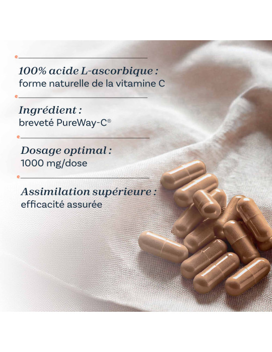Das Vitamin C PureWay-C® der französischen Marke Nutraclear ist ein patentiertes Vitamin C, das schnell absorbiert wird und eine hohe Bioverfügbarkeit aufweist.