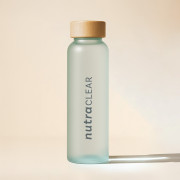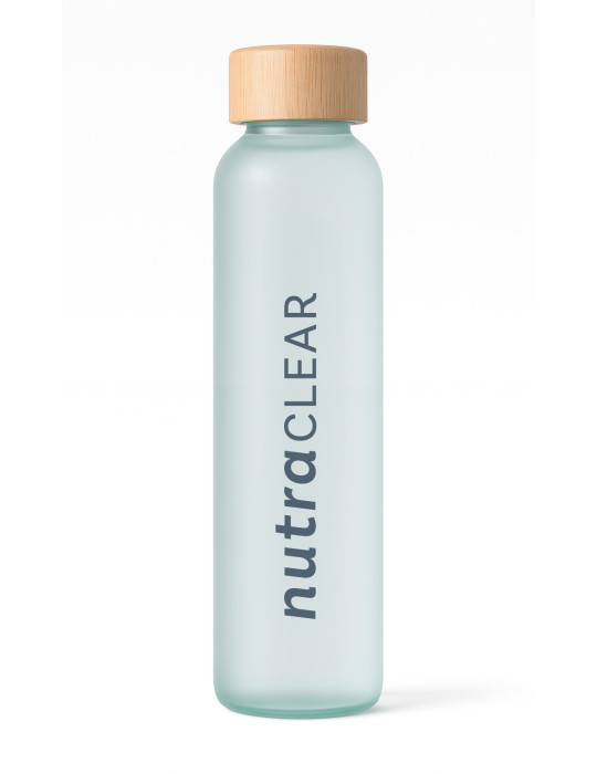 Die elegante und umweltfreundliche Nutraclear-Flasche aus Glas mit Bambusverschluss ist perfekt, um dich bei all deinen Wellness-Momenten zu begleiten. Mit der praktischen und robusten Flasche kannst du den ganzen Tag lang hydriert bleiben und gleichzeitig deinen Stil unterstreichen.