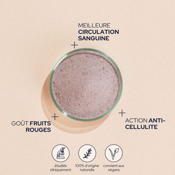 Die Formel ist zu 100 % natürlichen Ursprungs und kombiniert einen innovativen, patentierten Komplex, SelectSIEVE® Rainbow, mit einer Synergie aus 6 sorgfältig ausgewählten Pflanzenextrakten. Das Programm: eine gezielte Wirkung auf die Wassereinlagerung, die Mikrozirkulation und das Hautbild, um dir zu strafferen Beinen und einer sichtbar glatteren Haut zu verhelfen.
