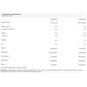 Zutaten: kohlensäurehaltiges Wasser, verzweigtkettige Aminosäuren BCAA (L-Leucin, L-Valin, L-Isoleucin), Vitamine (Niacin, B6, Folsäure, Biotin, B12), Säureregulator (Zitronensäure), Aromen, Süßungsmittel (Sucralose), Farbstoff (Beta-Carotin).