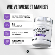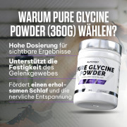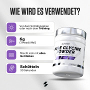 Die von der französischen Marke Superset Nutrition entwickelte Pure Glycine Powder (360g) zeichnet sich durch ihre Formel aus, die zu 100 % aus Glycin besteht, ohne Aromen, ohne Zusatzstoffe und ohne Zucker. Glycin ist natürlich, essentiell und wirksam und wirkt auf deine Muskeln, deine Gelenke und somit auf deine allgemeine Erholung: