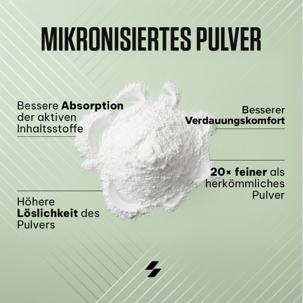 - Deine Kraft und dein Muskelvolumen zu steigern. Indem sie die Wassereinlagerung in deinen Fasern fördert, trägt sie zu einem dichteren Muskel und einem deutlicheren Kraftzuwachs bei.