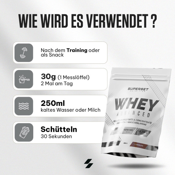 Zutaten Schokolade: Instant Molkenproteinkonzentrat (milch) {Molkenproteinkonzentrat (milch), Emulgator [Lecithine (soja)]} 82%, L-Glutamin 5,5%, entfettetes Kakaopulver 4%, Aromastoffe (enthält Koffein), L-Argininhydrochlorid 2%, Instant Molkeproteinisolat (milch) {Molkenproteinisolat (milch), Emulgator [Lecithine (soja)]} 1,4%, Instant hydrolysiertes Molkenprotein (milch) {Hydrolysiertes Molkenproteinisolat (milch), Emulgator [Lecithine (soja)]} 0,48%, Verdickungsmittel (Xanthan), Vitamin C (L-Ascorbinsäure), Süßungsmittel (Acesulfam K, Sucralose), Inulin 0,31%, Bromelain aus Ananas (1200 GDU/g) 0,04%, papain aus Papaya (1,5 FIP U/mg) 0,04%, Niacin (Nicotinamid), Vitamin B6 (Pyridoxinhydrochlorid), Vitamin B1 (Thiaminmononitrat), Vitamin B12 (Cyanocobalamin).