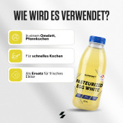 - 54 g Protein pro Flasche, das entspricht 16 Eiweißen