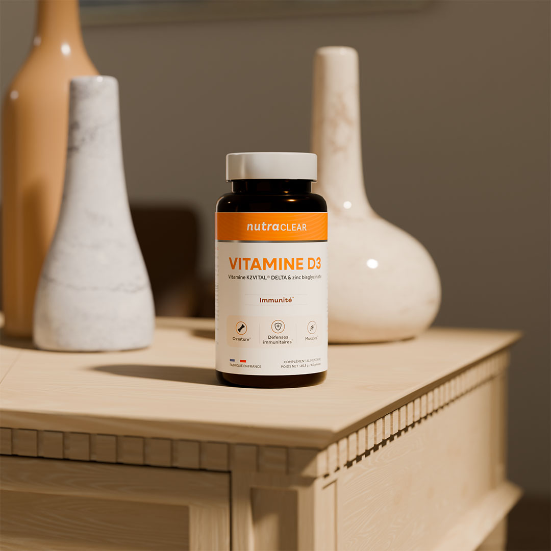 Das Nahrungsergänzungsmittel Vitamin D3 + Vitamin K2 (K2VITAL® DELTA) + Zinkbisglycinat der französischen Marke Nutraclear wurde entwickelt, um deinen Organismus im Alltag wirksam zu unterstützen.