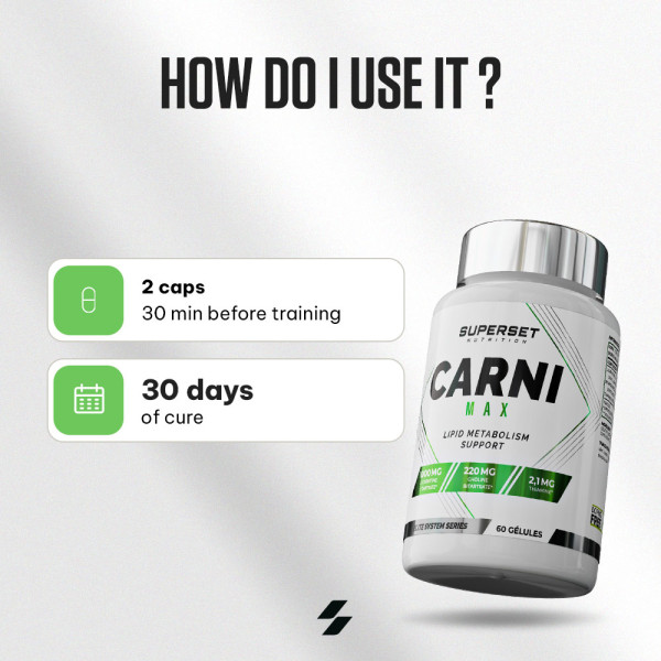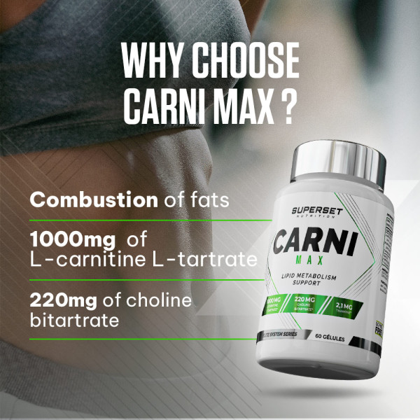 CARNI MAX (60 CAPS) is a dietary supplement carefully formulated by Superset Nutrition, combining L-carnitine, choline and vitamin B1. These ingredients are known for their role in supporting energy metabolism.