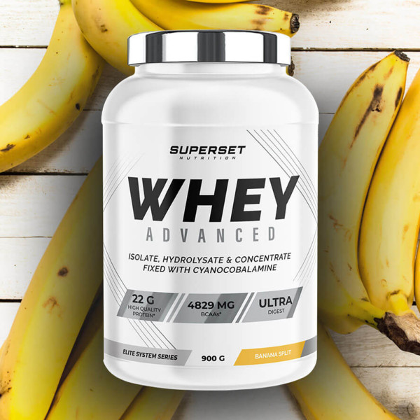 Ingredients Banana Split instant whey protein concentrate (milk) {whey protein concentrate (milk), emulsifier [lecithins (soy)]} 84%, L-glutamine 5.5%, flavours, white chocolate powder (sucrose, cocoa butter, milk powder) 2.2%, L-arginine hydrochloride 2%, instant whey protein isolate (milk) {whey protein isolate (milk), emulsifier [lecithins (soy)]} 1.4%, instant hydrolysed whey protein (milk) {hydrolyzed whey protein isolate (milk), emulsifier [lecithins (soy)]} 0.48%, thickener (xanthan gum), vitamin C (L-ascorbic acid), sweeteners (acesulfame K, sucralose), inulin 0.31%, acid (citric acid), pineapple bromelain (1200 GDU/g) 0,04%, papaya papain (1.5 FIP U/mg) 0.04%, niacin (nicotinamide), vitamin B6 (pyridoxine hydrochloride), vitamin B1 (thiamine mononitrate), vitamin B12 (cyanocobalamin).