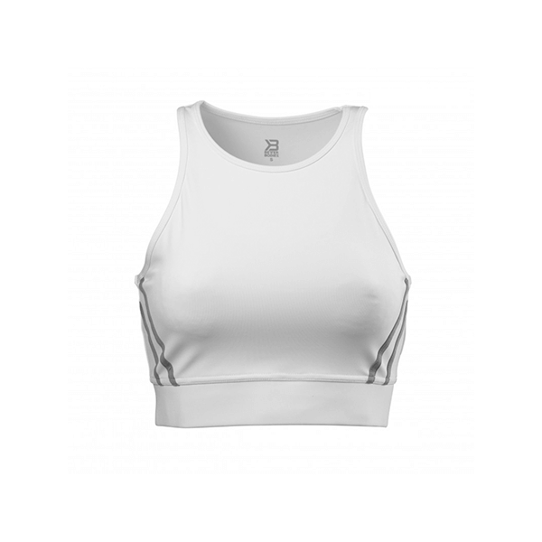 Lined in brushed fabric for added comfort, the Chelsea Halter offers medium support and a perfect fit for a sporty, fitted look, with contrasting stripes down the side and a back with wide armholes highlighted at the bottom by the central logo Better Bodies