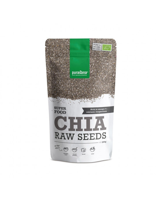 Purasana Organic Chia Seeds also contain protein: one dose provides 23% protein, roughly equivalent to a chicken breast. Chia Raw Seeds are also a good source of energy and help improve physical performance. An excellent dietary supplement, Purasana organic chia seeds are a practical and effective way to optimize nutrition while providing a long-lasting feeling of satiety and limiting the absorption of sugars and fats from meals. It's also an excellent source of calcium, magnesium, potassium, phosphorus, manganese and vitamin E.