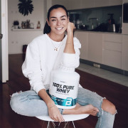 Whey protein is derived from whey protein. The 100% Pure Whey formula contains both concentrates, the most common form of whey, and isolates, less rich in sugars and fats. One dose provides just 1.1g of sugars and 1.1g of saturated fats.