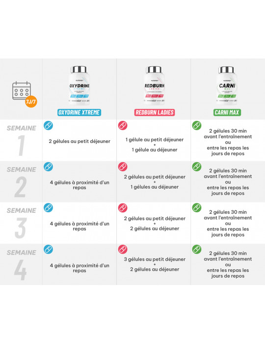 4 weeks of support with natural supplements, a balanced nutritional plan and a training program designed by nutrition experts and sports coaches to transform your figure. So, ready to take up the challenge?
