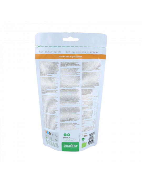 Net weight : 200 gMix ½ teaspoon of Purasana Turmeric into 300 ml of plant milk, fruit juice or smoothie. Use in a variety of dishes.