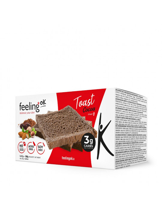 Protein Toasted Chocolate Toasts (4x40g ) from Feeling OK are 100% Italian crackers with a great chocolate taste, ideal for sports or weight-loss diets.