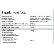 Ingredients: Water, beta-alanine, acidity regulator: citric acid, taurine, caffeine, flavourings, L-tyrosine, sweeteners - acesulfame K, sucralose, salt, E150d sorbic color; Cayenne pepper fruit extract (Capsicum annuum L.), colourings: carotenoids (cola flavour), riboflavins (orange flavour).