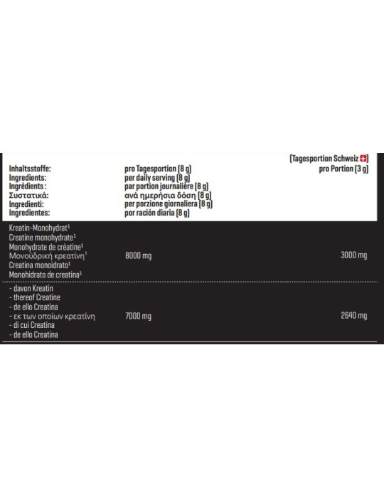 Net weight : 500 gDissolve 1/3 of a scoop in 100ml of water or in your protein shaker before or after your workout. Do not exceed the recommended daily dose of 3g creatine.
