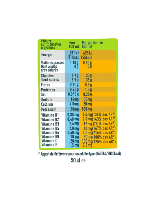 This drink is a real remedy against fatigue, thanks to the presence of vitamins C and B6, which help combat effort-related fatigue. The vitamin B2 contained in this drink helps protect cells against exercise-induced oxidative stress. It acts as an effective antioxidant shield! As well as providing a significant amount of vitamins, it also offers an energy boost thanks to the presence of glucose and fructose from the fruit contained in the drink.