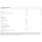 Ingredients : D-aspartic acid 30%, flavours, L-arginine hydrochloride 15%, anti-caking agent (calcium phosphates), L-lysine hydrochloride 5%, flavour enhancer (glycine and its sodium salt), acetyl-L-carnitine 5%, L-carnitine L-tartrate 5%, l-ornithine hydrochloride 2.7%, magnesium carbonate, sweeteners (acesulfame K, sucralose), beet powder concentrate [maltodextrine, concentré de betterave, acidifiant (acide citrique)], bulking agent (polydextrose), boric acid, acidifier (citric acid), colorant (carmoisine), zinc sulfate, cholecalciferol.