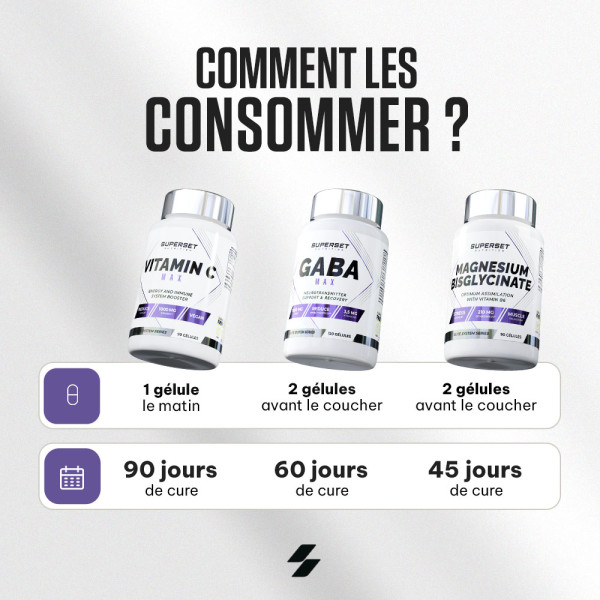 This pack combines three essentials to promote relaxation, improve sleep quality and optimize recovery. Ideal for reducing stress and restoring deep, restorative sleep, it offers you a complete solution for peaceful nights and waking up feeling refreshed.