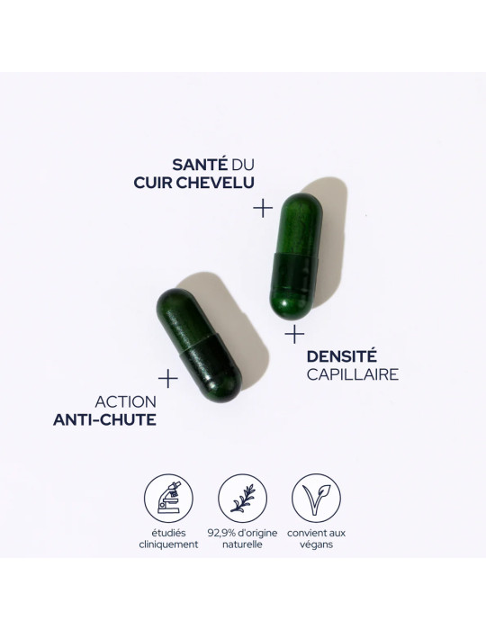 Formulated 100% for men's needs, this treatment effectively targets androgenic alopecia, with no known side effects. A study carried out on 27 men demonstrated its efficacy and good tolerance, with visible results on hair density and quality.