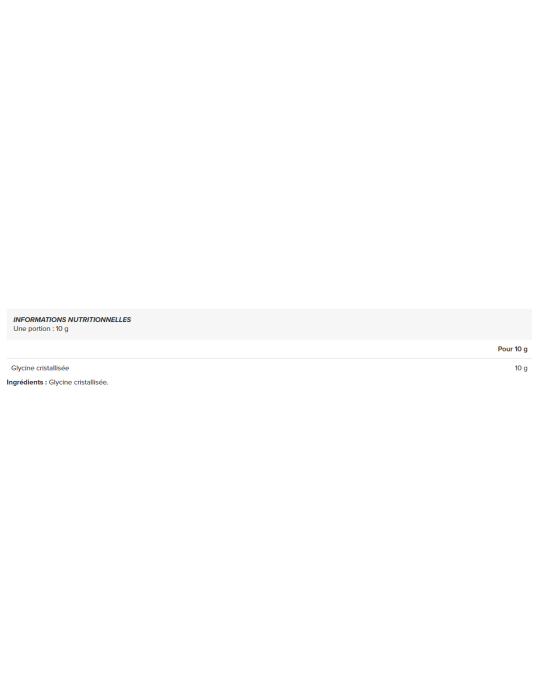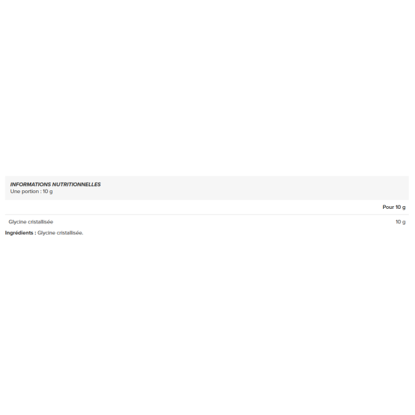 Greenwhey 's Crystallized Glycine (300 g) is exceptionally pure (≥ 99.9%), obtained through a natural water purification process on activated charcoal. In its crystallized form, it provides 100% pure glycine per serving, a non-essential but key amino acid, accounting for nearly a third of the collagen amino acids in your body.