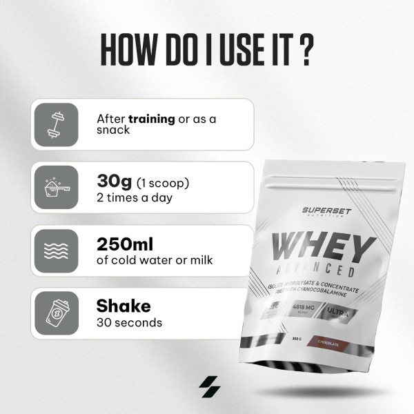 Ingredients Chocolate: instant whey protein concentrate (milk) {whey protein concentrate (milk), emulsifier [lecithins (soy)]} 82%, L-glutamine 5,5%, defatted cocoa powder 4%, flavourings (contains caffeine), L-arginine hydrochloride 2%, instant whey protein isolate (milk) {whey protein isolate (milk), emulsifier [lecithins (soy)]} 1.4%, instant hydrolysed whey protein (milk) {hydrolyzed whey protein isolate (milk), emulsifier [lecithins (soy)]} 0,48%, thickener (xanthan gum), vitamin C (L-ascorbic acid), sweeteners (acesulfame K, sucralose), inulin 0,31%, pineapple bromelain (1200 GDU/g) 0,04%, papaya papain (1,5 FIP U/mg) 0,04%, niacin (nicotinamide), vitamin B6 (pyridoxine hydrochloride), vitamin B1 (thiamine mononitrate), vitamin B12 (cyanocobalamin).