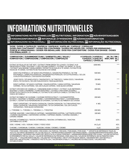 REDBURN HARDCORE (100 CAPS) es su aliado indispensable en su búsqueda de definición muscular. Gracias a su formulación, estimula la termogénesis y favorece la movilización de las grasas, lo que le permite aspirar a una reducción significativa de su grasa corporal. Recomendado por entrenadores y expertos, este quemagrasas se integra perfectamente en su dieta para optimizar su pérdida de peso.