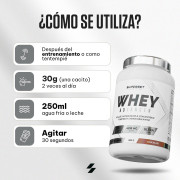 Ingredientes Chocolate blanco pasiónConcentrado instantáneo de proteína de suero (leche) {concentrado de proteínas de trigo (leche), emulgente [lecitinas (soja)]} 79%, chocolate blanco en polvo (sacarosa, manteca de cacao, leche en polvo) 6,3%, L-glutamina 5,5%, aromas, clorhidrato de L-arginina 2%, aislado instantáneo de proteína de suero (leche) {aislado de proteína de suero (leche), emulgente [lecitinas (soja)]} 1,4%, proteína de suero hidrolizada instantánea (leche) {aislado de proteína de suero hidrolizada (leche), emulgente [lecitinas (soja)]} 0,48%, edulcorantes (sucralosa, acesulfamo K), espesante (goma xantana), vitamina C (ácido L-ascórbico), inulina 0,31%, bromelina de piña (1200 GDU/g) 0,04%, papaína de papaya (1,5 FIP U/mg) 0,04%, niacina (nicotinamida), vitamina B6 (clorhidrato de piridoxina), vitamina B1 (mononitrato de tiamina), vitamina B12 (cianocobalamina).