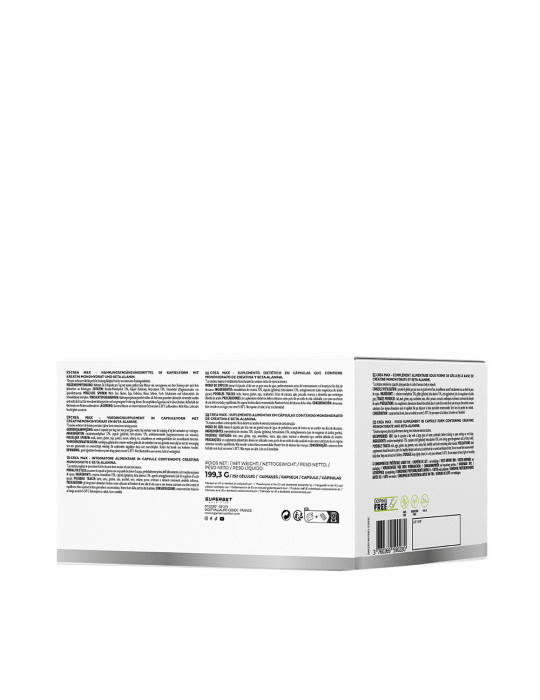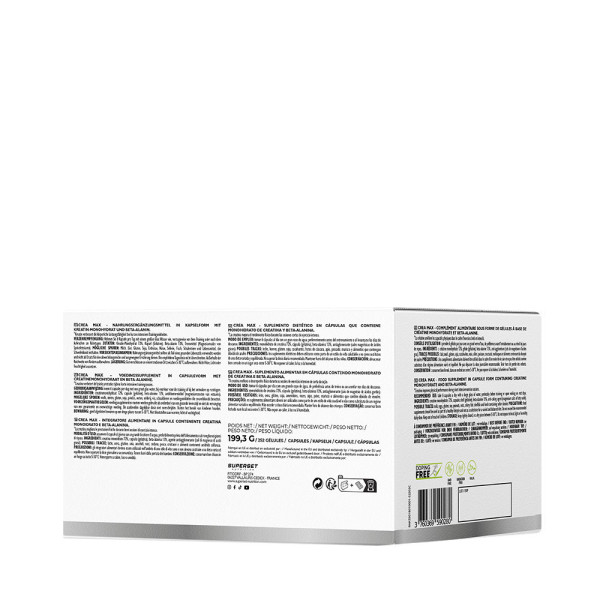 - Práctico y seguro: envasado en prácticas cápsulas, CREA MAX (252 CAPS) está certificado antidopaje y no contiene hidratos de carbono.