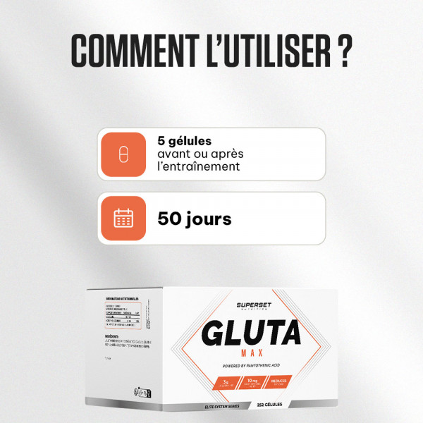 Después de cada sesión intensa, sus músculos necesitan apoyo para reconstruirse más fuerte y más rápido. La L-glutamina pura de GLUTA MAX (252 CAPS) ayuda a recargar tus reservas para garantizar una recuperación óptima y rápida, minimizando al mismo tiempo la degradación muscular.