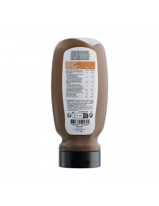 Ingredientes Caramelo : agua, edulcorantes (eritritol, maltitol y sucralosa), estabilizador (goma xantana), aromas (contiene centeno), acidulante (ácido láctico), conservador (sorbato potásico), sal y colorante (caramelo de amoníaco sulfitado).
