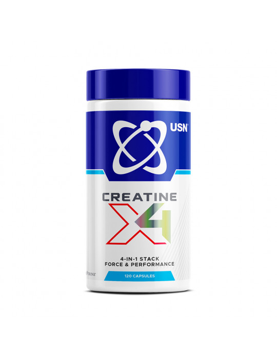 USN Creatine x4 (120 cápsulas ) en cápsulas de es un complejo de 4 tipos de creatina enriquecido con aminoácidos, glicina y taurina, que optimizan la construcción muscular y mejoran el rendimiento y la recuperación.