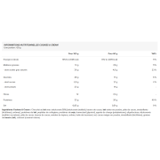Ingredientes Galleta de chocolate blanco :ChocolatelecheCon edulcorante (28%) [edulcorante (maltitol), Manteca de cacao,lechePolvo, pasta de cacao, emulgente (lecitinas), aroma], mezcla de proteínas (proteína de cacao, pasta de cacao, emulgente (lecitinas), aroma]leche, proteínassoja), péptidos de colágeno, humectante (glicerol), agente de carga (polidextrosa), oligofructosa, proteína desoja, edulcorantes (maltitol, sucralosa), pasta de cacao, cacao en polvo desgrasado, manteca de cacao, aceite de girasol, almidón de tapioca, emulgente (lecitinas), aroma, sal, colorante (caramelo natural).