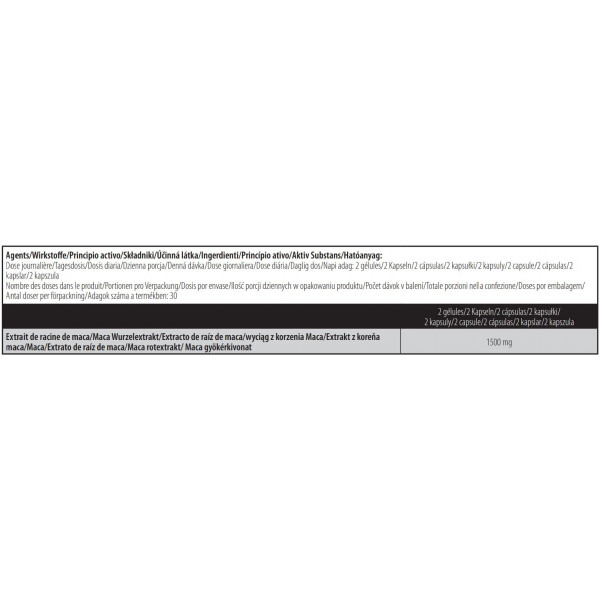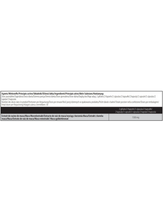 Maca (60 cápsulas) es un tratamiento de un mes en forma de cápsulas. Una porción contiene 1500 mg de extracto de raíz de Maca. Perfecto para un consumo rápido y fácil dondequiera que esté.