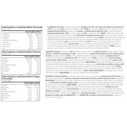 Ingredientes Chocolate:mezcla de proteínas (proteína LECHE, concentrado de proteína de suero (LECHE), en polvo LECHE desnatada, emulgente (E322 (SOJA))), chocolate leche (16%) (azúcar, manteca de cacao, lECHE desnatada en polvo, pasta de cacao, lactosa y proteína del suero (LECHE), grasa de palma, suero en polvo (LECHE), grasa de LECHEEmulgente (E322 (SOJA), E476), extracto de vainilla), Mini M&M's (12%) (azúcar, pasta de cacao, LECHE harina integral en polvo, lactosa (LECHE), manteca de cacao, almidón, grasa de palma, manteca de karité, jarabe de glucosa, emulgente (E322(SOJA)), estabilizador (E414), colorantes (E100, E133, E160a, E162, E170,E172), dextrina, agente de recubrimiento (E903), aceite de palmiste, sal, extracto de vainilla), caramelo (10%) (LECHE concentrado desnatado azucarado (LECHE desnatada, azúcar), jarabe de glucosa, jarabe de azúcar invertido, aceite de palma, mantequilla (LECHE), azúcar, emulgente (E471), estabilizador (E440), sal, aroma), humectante (glicerol), colágeno hidrolizado, humectante (maltitol), aislado proteico de SOJAJarabe de glucosa, cacao desgrasado en polvo, aceite de girasol, aroma, sal, antioxidante (E306).