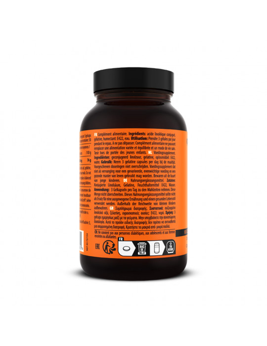 QNT CLA de contiene 3000 mg de CLA por dosis, lo que ayuda a perder peso si se combina con una dieta equilibrada y actividad física regular. Se ha demostrado que 2 g diarios de CLA ayudan a mantener niveles normales de colesterol en sangre.