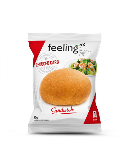 El sándwich proteico (50 g) de Feeling OK es un panecillo hiperproteico 100% italiano ideal para dietas deportivas o de adelgazamiento.