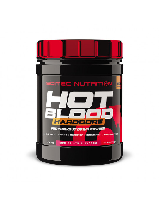 Hot Blood Hardcore es la última versión del famoso pre-entrenamiento Hot Blood de la marca Scitec Nutrition. La fórmula y las dosis han sido rediseñadas para un impulso aún más potente