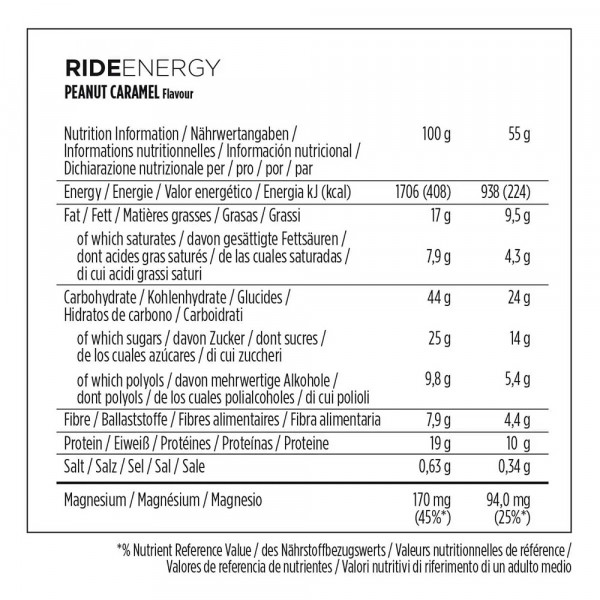 La fórmula de esta barrita energética Ride, que combina hidratos de carbono, proteínas de alta calidad y magnesio, proporciona un verdadero impulso a la vida cotidiana.