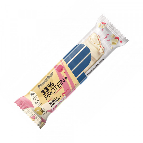 Las barritas protein plus bar 33%, disponibles en cajas de 10 barritas (cada una pesa 90 g) son el tentempié ideal para llenarse de proteínas siempre que quiera durante el día.