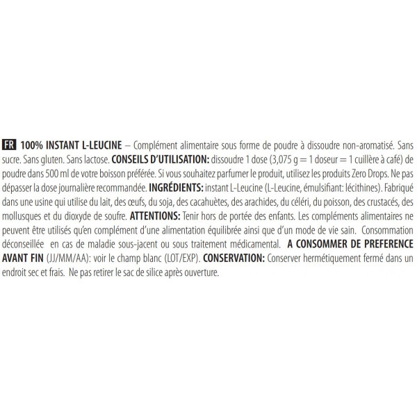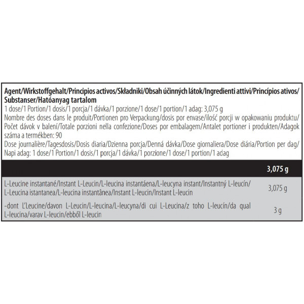 L-Leucina instantánea - de los cuales L-Leucina | 3,075 g 3 g |