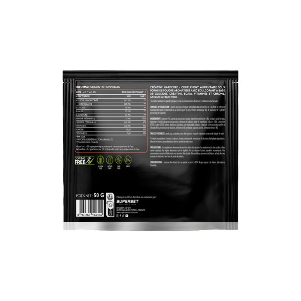 Pruebe Hardcore Creatine (50 g) de Superset Nutrition con 14 principios activos y 3 g de creatina por sobre para ayudarle a aumentar su masa muscular.