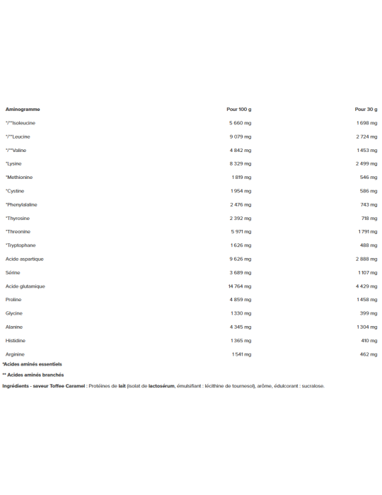 Con menos de un 1% de azúcar, sólo un 1% de grasa y sin aspartamo, esta proteína es perfecta si busca optimizar su aporte nutricional sin superfluidades. Se mezcla fácilmente y está disponible en una amplia gama de sabores gourmet como vainilla, chocolate, galletas y crema, doble chocolate avellana, tiramisú, fresa, plátano, frambuesa, Snickers, caramelo salado y caramelo toffee.