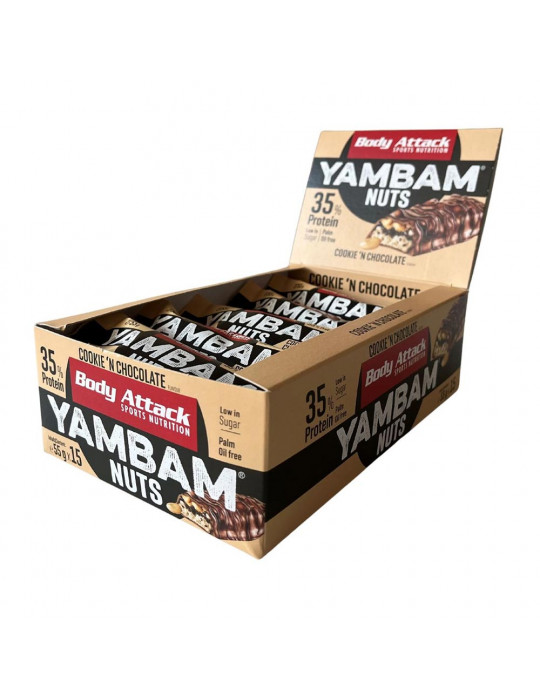 Box YamBam Nuts Bar (15x55g ) son barritas de proteínas fabricadas por la marca Body Attack Nutrition.