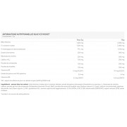 Ingredientes - sabor a bebida energéticaBeta-alanina, tri-creatina malato, betaína, extracto de semilla de amaranto (Amaranthus cruentues L.), bitartrato de colina, cafeína, polvo de fruto de schisandra (Schisandra chinensis (Turcz.) Baill.), polvo de raíz de rhodiola rosa (Sedum roseum (L.) Scop.), niacina (nicotinamida), piperina de pimienta negra (Piper nigrum L.) 95%, piridoxina HCL, aromas, antiaglomerantes : E-341, E470b, E-551, E-953, edulcorantes (E950,E951*), colorantes (E101, E150c), ácido málico.