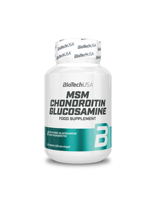 MSM condroitina glucosamina (60 comprimidos) es un complemento alimenticio en comprimidos de la marca Biotech USA
